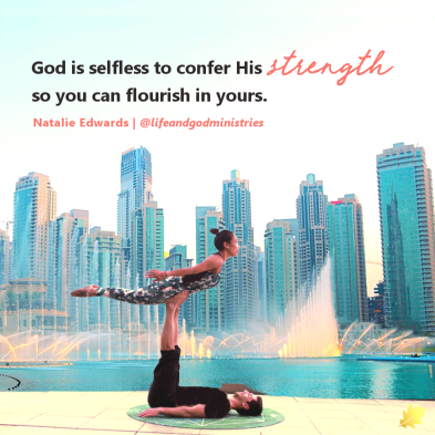Our God who’s power reigns outmatched chooses to confer His own image to you… His beloved. It was always His intention to do life with you. He wants to… if you will give Him the rightful place of being Lord of your heart. There’s so much strength He wants to give to you because it’s His joy to. It’s His selfless love that makes every part of Him available to us.