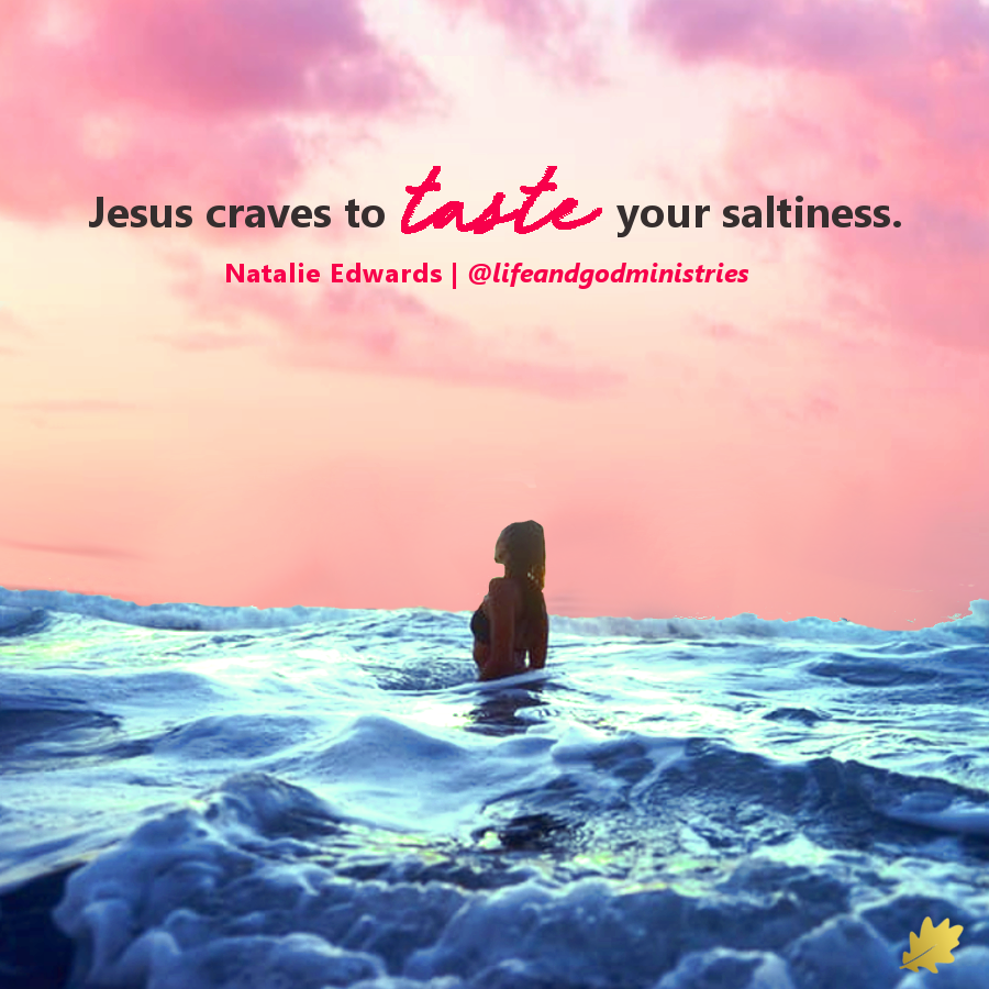 Saltiness… my tastebuds perk up at the moment of its encroachment. It’s amplified… the experience of what God wants it to taste like. Love… life… adventure… nature… human connection… it’s better with Your flavor, Lord. Shower your saltiness on every bit of my essence.