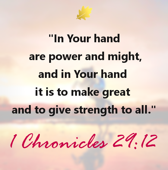 “Both riches and honor come from You, and You rule over all. In Your hand are power and might, and in Your hand it is to make great and to give strength to all.” 1 Chronicles 29:12