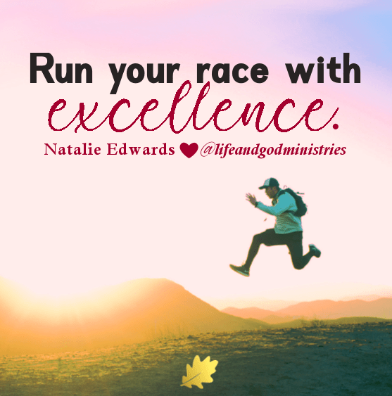 Run with excellence in everything you do. People are watching. Show them there exists a higher Kingdom worth living for.