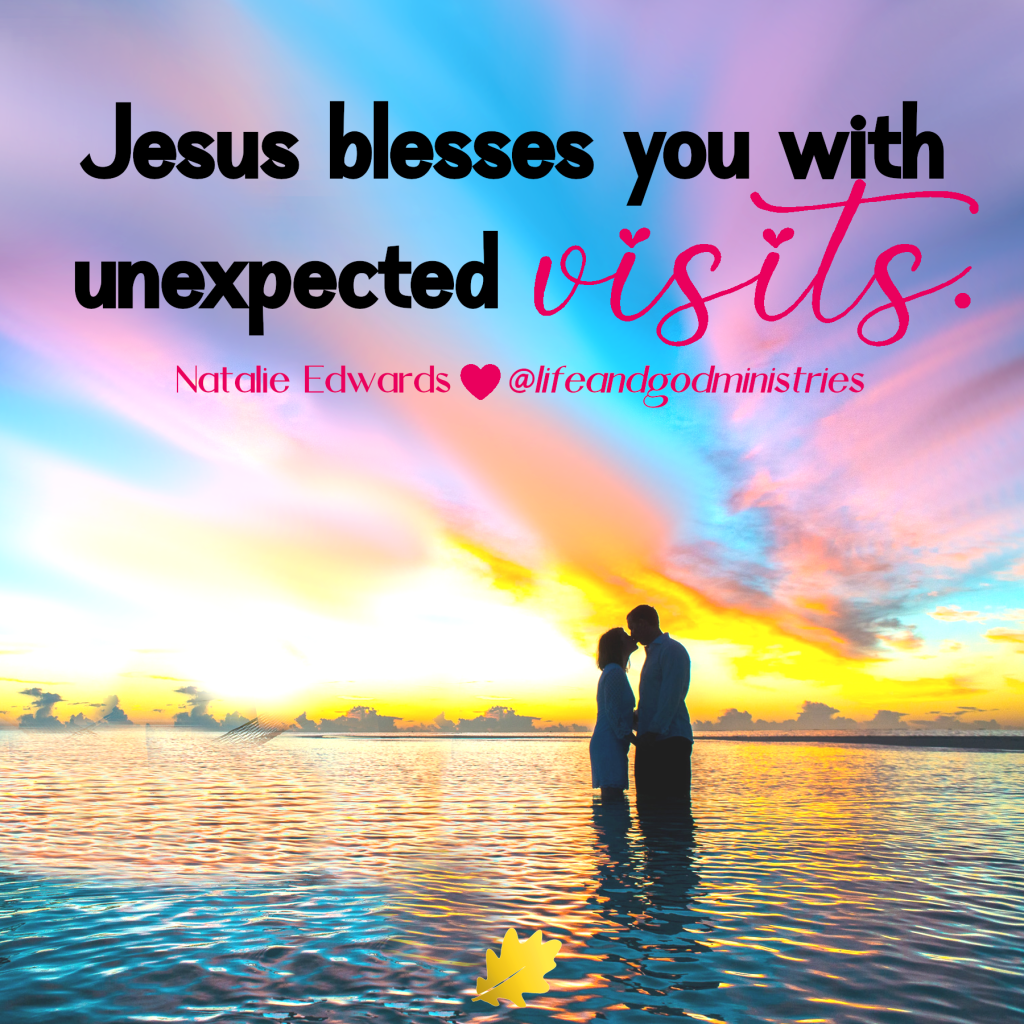 Embrace the unexpected. Jesus always has a plan in mind, for better than we could imagine. His sovereignty allows Him to show up any time and anywhere. When Jesus walks in the room, His presence captivates us. His Spirit liberates us with rejuvenation only He can give. He is the coming King, the blessed Messiah, the Word made flesh to dwell among us. He came once to save us from sin and He is coming again to whisk away into glory.