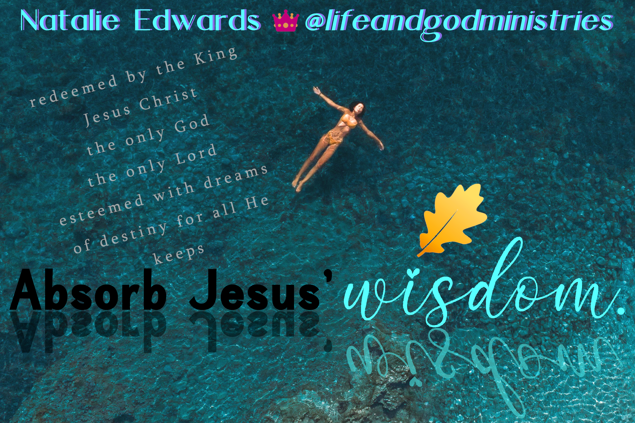 Absorb Jesus’ wisdom. Command with Jesus’ wisdom. Teach with Jesus’ wisdom. Live with Jesus’ wisdom saturating your soul like a sponge soaking up the anointing of His potent truth. Jesus dictates the wisdom of God to us through the Scriptures.